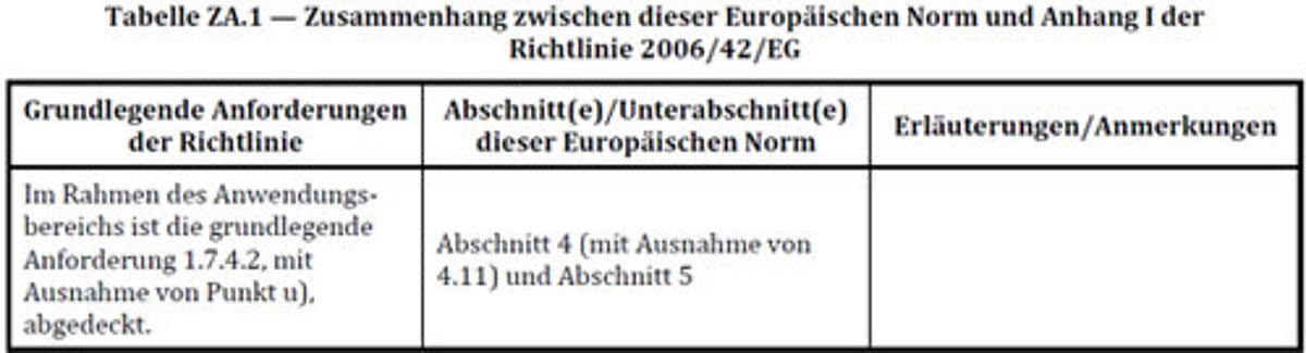 Mit Anwendung der EN ISO 20607 werden auch nur die Vorgaben des Abschnittes 1.7.4.2, exkl. Punkt u) (Angaben zu Lärmemissionen, Anm.) als erfüllt angesehen.