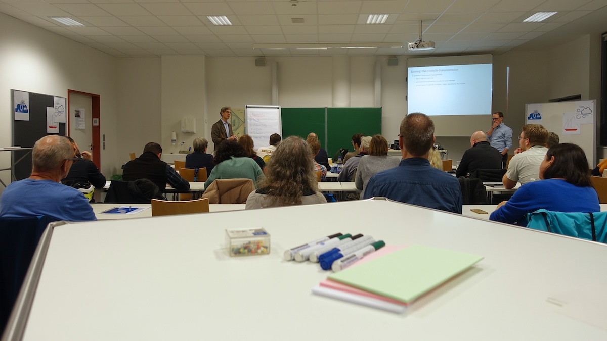 Die Frage, ob beim „In-den-Verkehr-Bringen“ von Produkten eine papier-basierte Dokumentation mitgeliefert werden muss, ist beantwortet. Sie lautet: grundsätzlich nein. Damit aber stellten sich gleich eine ganze Reihe anderer Fragen: Was bedeutet „grundsätzlich“? Was muss in welcher Form geliefert werden? Und vor allem: Wie kommt man nun vom Papier zur elektronischen Dokumentation? In diesem Workshop sind wir gemeinsam diesen Fragen nachgegangen und entwickelten ein erstes Vorgehensmodell. Dabei profitierten die 30 Teilnehmenden von den gegenseitigen Erfahrungen im gemeinsamen Austausch. An Beispielprojekten ergründeten wir in Arbeitsgruppen Ziele, Unterstützungen und Hindernisse auf dem Weg zur digitalen Dokumentation in all ihren Facetten.