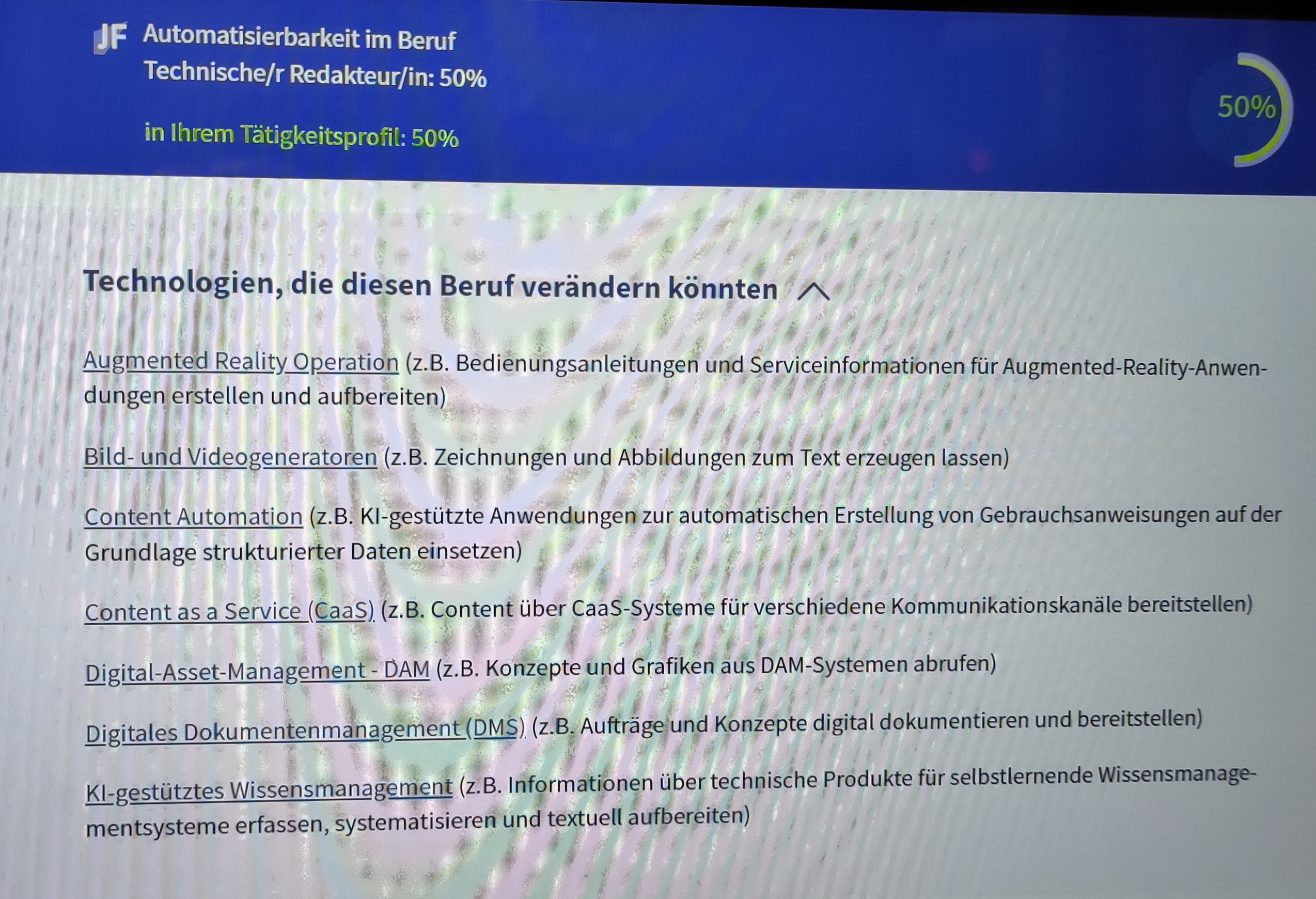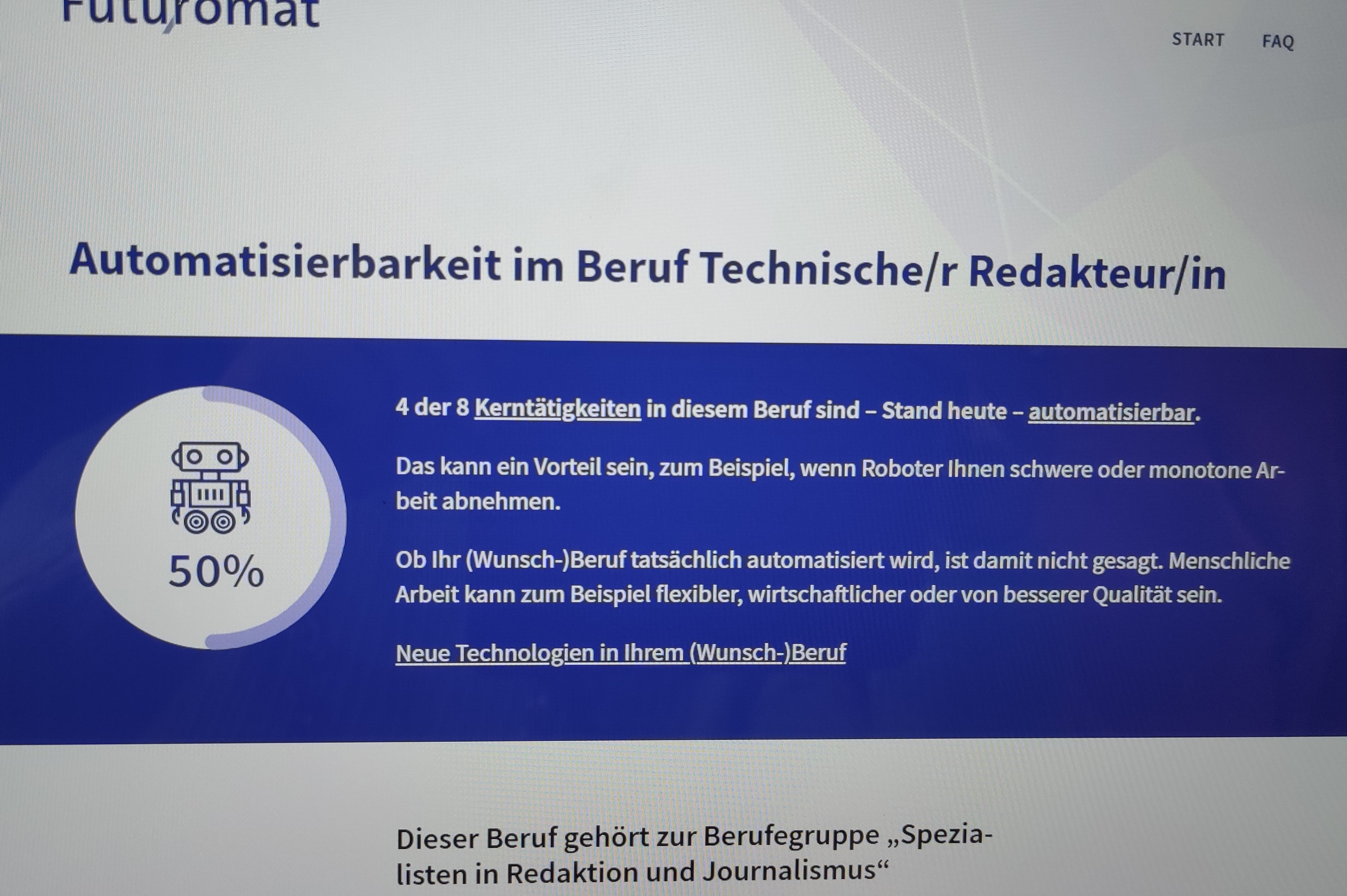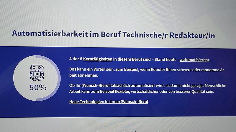 Nicht nur im Zukunftsmuseum, auch unter dem folgenden Link können Sie testen, wie digitale Technologien Ihren Job verändern: https://job-futuromat.iab.de