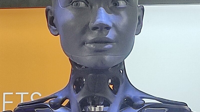 Der Einstieg erfolgte vor einer imposanten Leinwand, die kontinuierlich faszinierende, KI-generierte Bilder der Zukunft erzeugte. Es war beeindruckend zu sehen, wie Technologie kreativ eingesetzt werden kann, um neue Perspektiven zu eröffnen. Gleichzeitig wurden wir sofort in das Thema Künstliche Intelligenz eingeführt. AMECA stand bereit, ein humanoider Roboter, mit dem man über ein Mikrofon interagieren konnte. Dieser war als ein lokales System aufgesetzt, das gezielt so konzipiert war, dass problematische odas vernetzte Zuhauseer diskriminierende Äußerungen ausgeschlossen wurden. Dies ermöglichte einen unaufgeregten und zugleich tiefgehenden Austausch über KI, ihre Möglichkeiten, Grenzen und ethischen Fragestellungen.