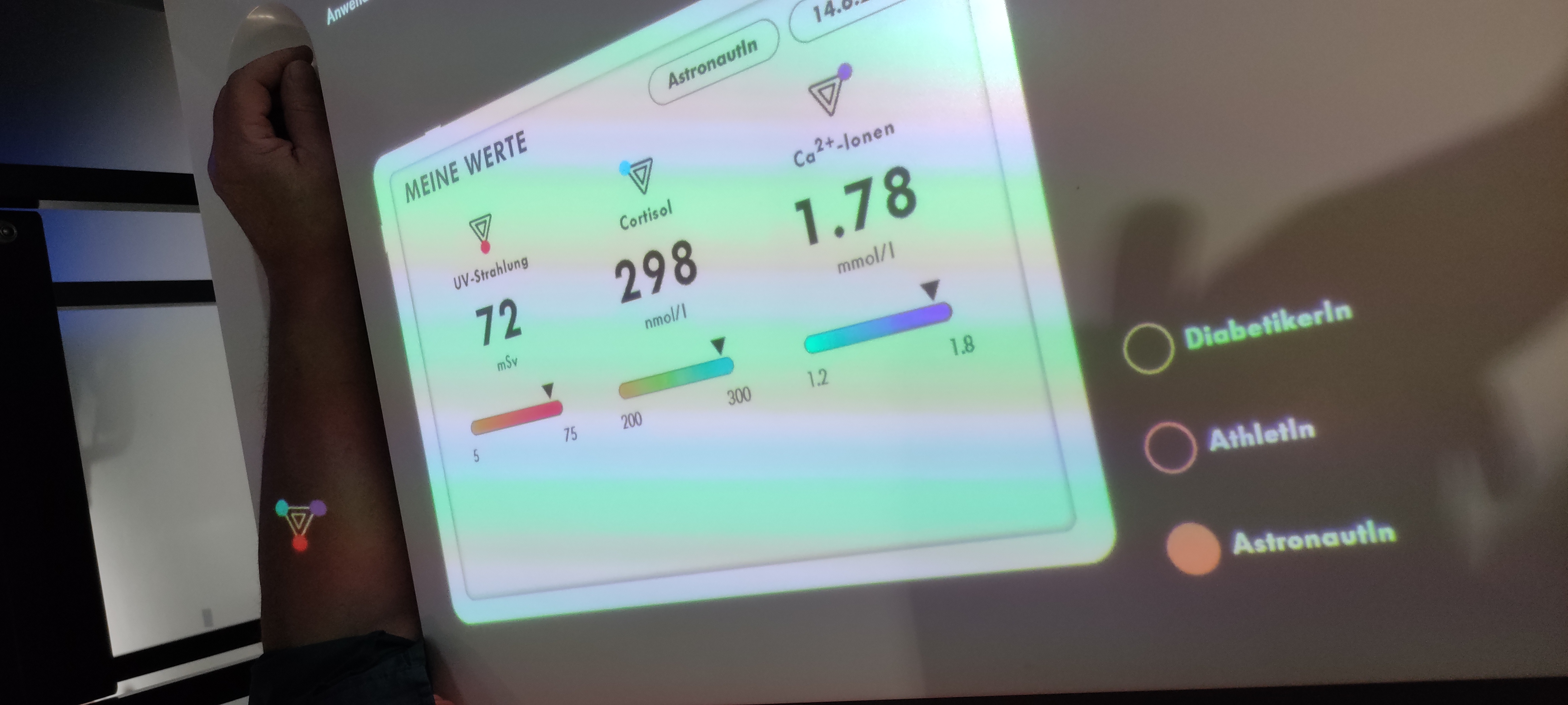 Im Themenbereich Optik, Erkennung und Überwachung beschäftigten wir uns intensiv mit Gesichts- und Körpererkennung. Die Ausstellung zeigte, welche Möglichkeiten moderne Systeme bieten, Gesundheitsdaten zu erfassen und für Prävention, Diagnose oder personalisierte Anwendungen zu nutzen. Gleichzeitig regten diese Technologien Fragen zu Datenschutz, Missbrauch und ethischer Verantwortung an. Besonders eindrucksvoll war, wie Technologie helfen kann, Vorurteile zu verringern, etwa im Personalbereich oder bei Entscheidungsprozessen. Gleichzeitig erzeugte die Vielzahl von Kameras, Sensoren und Robotern ein Gefühl der Beobachtung – ein subtiler, aber wirksamer Hinweis darauf, dass Fortschritt immer auch ein Bewusstsein für die eigene Privatsphäre erfordert.