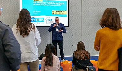 Auf dem careerHUB konnten sich Interessierte von Experten Coaching-Tipps für ihre Jobsuche holen oder sich über ein technisches Praktikum und Karrieremöglichkeiten informieren. Ganz neu in diesem Jahr: Speed-Dating – Job-Matchmaking, bei dem sich potenzielle Arbeitgeber und Bewerber in 5-minütigen Gesprächen kennenlernen konnten. Weitere Möglichkeiten zur Jobvermittlung und zum beruflichen Kennenlernen boten die Jobwand und die Hochschulstände auf dem careerHUB.