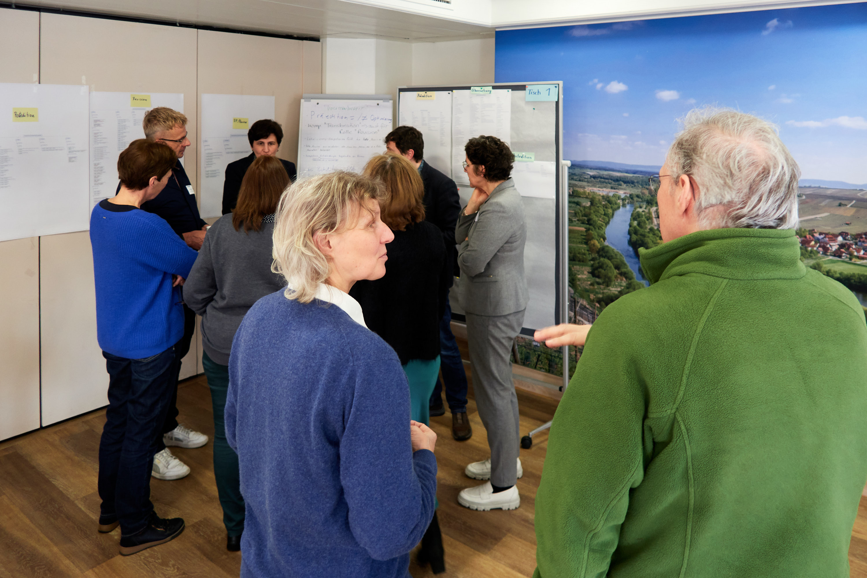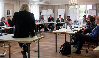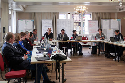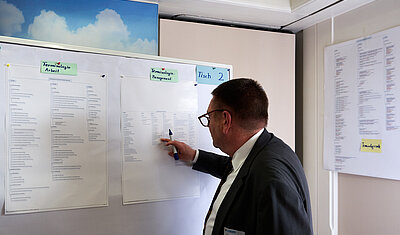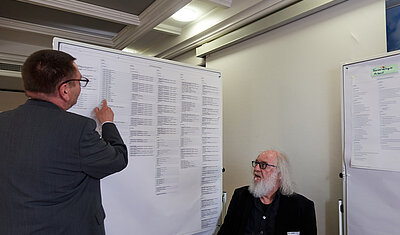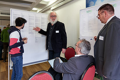 Nachdem die Kolloquiumsteilnehmer:innen mit dem Kompetenzrahmen vertraut waren, gruppierten sie sich als Nächstes an vier Thementischen, um den Kompetenzrahmen inhaltlich zu bewerten und auf Vollständigkeit zu prüfen. Im Ergebnis aus der Feedbackrunde zeigte sich, dass der Kompetenzrahmen im hohen Maß vollständig ist. Lediglich kleinere Ergänzungen oder terminologische Änderungen wurden von den Kolloquiumsteilnehmer:innen eingebracht.