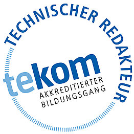 Die tekom verleiht Weiterbildungsgängen zum Technischen Redakteur, welche die Anforderungen und Qualitätsstandards der tekom erfüllen, das Akkreditierungssiegel "tekom-akkreditierter Bildungsgang".